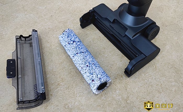 取下透明窗盖后,也可取滚刷,发现滚刷很特别。它是采用了加宽加厚的复合滚刷,为软毛+ 硬毛混合材质,长久使用不易掉毛,且在湿水状态下自身的毛刷不会粘在一起,能更好清洁顽固污渍和清洁地毯,同时也能轻松清洁缝隙的细微垃圾和灰尘。