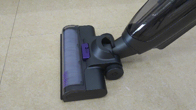 从上图或视频可以看到,开机后,长按把手的喷水按键,清水箱的水就会实时经过电解水技术处理,产生次氯酸水,然后喷在滚刷上,再过滚刷高速滚动清洁地面,便可起到即时杀菌作用,且喷出的次氯酸水在使用过后可完全自行降解,无刺激性气味、无残留,对人和家中宠物无害,安全。