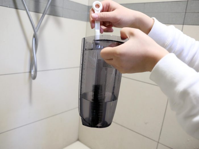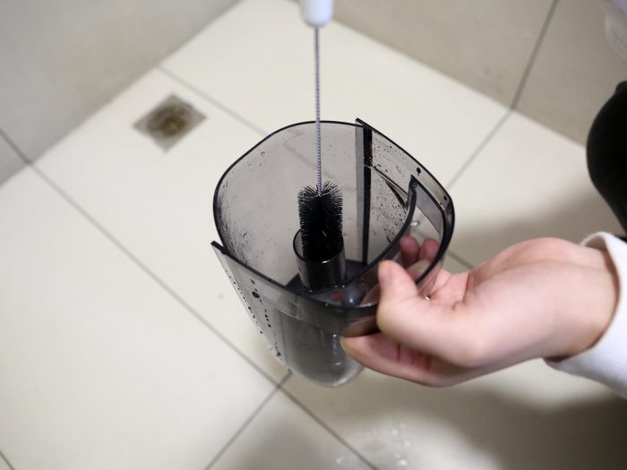 如果有顽固污渍,还可以用机器自带的清洁毛刷来打理,这个长毛刷可以对污水桶内部达到360度无死角清理,非常好用!