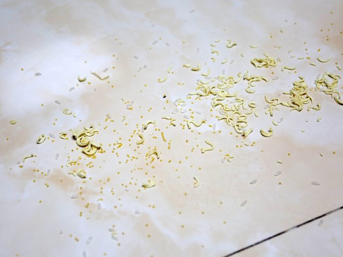 继续测试,下面登场的是干垃圾的代表,家里最常见的食物残渣,此类垃圾的特点是比较坚硬,大多都是固体颗粒。