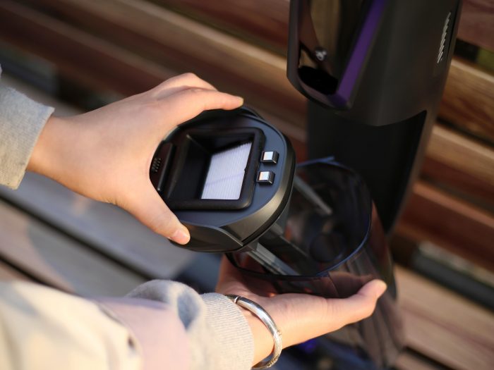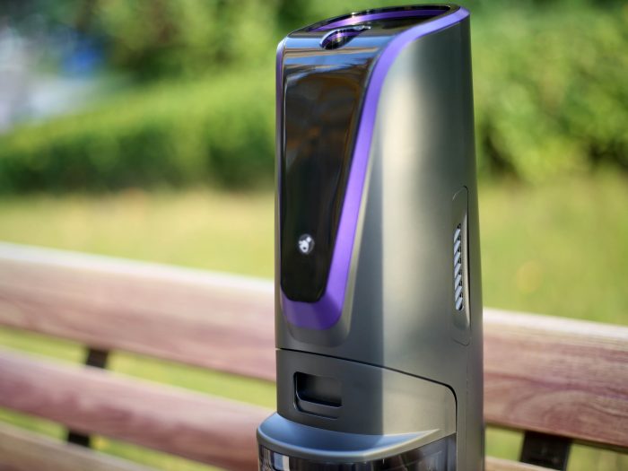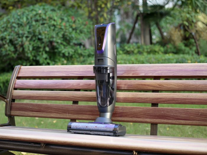这款逸尘杀菌洗地机2Pro全身采用了黑+紫的配色,属于比较百搭的颜色,随便放在家里的一个小空隙处都显得非常和谐。