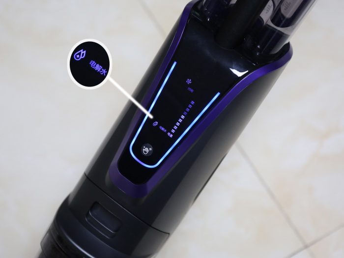 对于开机和更换档位,相信大家都非常清楚。那么电解水又是怎么回事,这里可以跟大家简单说说。电解水是以家里的自来水为原料通过电解产生酸性离子水,电解后产生的酸性电解水具有杀菌用途。这款洗地机可以在出水的同时实时进行电解水杀菌,为家里的安全卫士保驾护航!