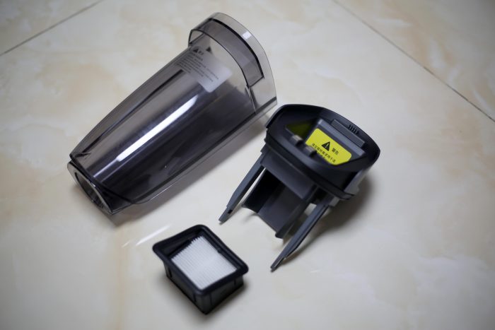 紧接着下面是一个可拆卸的污水收集盒,上面还有一层HERA过滤网。拆卸方式也很简单,按住卡扣即可轻松拿下。