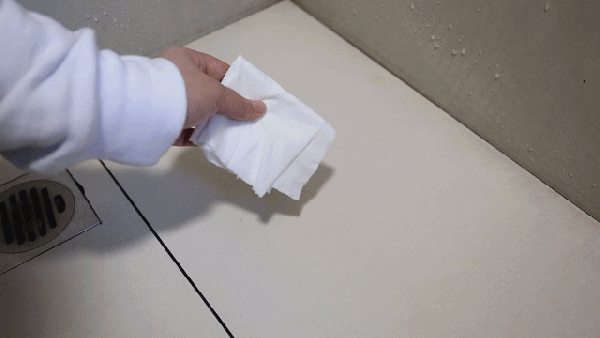 清理完的卫生间地面,我们用纸巾擦拭一下,可以看到基本是干的。甚至没有太多水渍。这点值得称赞!