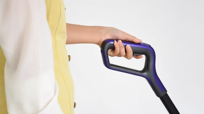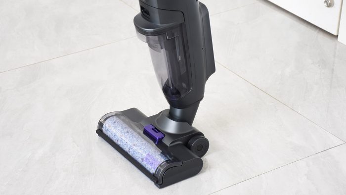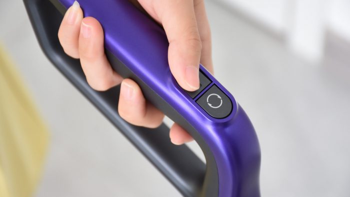 湿拖方面,考虑到不同地板的清洁需求,出水量是可以自己控制的,通过手柄内侧的扳机键可以控制是否喷水。比如清洁木质地板的时候只需出少量的水即可,防止水量过大渗透到地板缝隙造成损坏;清洁厨房等油污比较多的环境时可以持续按下扳机键喷水,清洁力度更大。