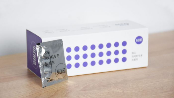 除了清洁方面的优势之外,逸尘杀菌洗地机2 Pro的另一个优势就是杀菌消毒,在这个疫情防控常态化的时候显得非常实用,尤其是家里有小孩子经常坐在地板上玩,或者是有宠物的家庭再合适不过了。杀菌需要用到杀菌剂,需要自己购买,也是逸尘自研的产品,通过中科院检测认证。