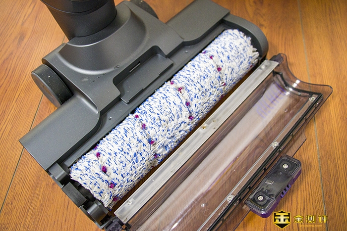 在清理固体物体时,尤其黄豆没有崩飞的现象,这与这款洗地机使用了软毛滚刷有关,软毛滚刷的毛刷遇到固体颗粒时,不是挤压,而且包裹,包裹之后送入吸风口,如果是纤维滚刷很可能因为挤压而崩飞,所以打扫固体更干净,尤其是大颗粒的物体。