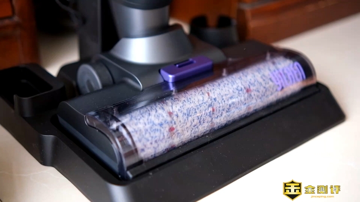 滚刷则和扫地机差不多,先对准转动轴,再下按滚刷到安装位就可以了;随后别忘记安装好滚刷窗,这个要是遗忘的话,就可能在使用时产生液体喷溅。