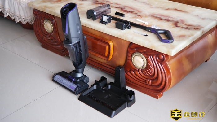 为了看清全貌,我们先组装,对照说明书的安装结构图,差不多2分钟就可以搞定。从手柄接口可以看出,这款扫地机手柄采用了方形接口和四项供电设计,在保证安装稳固的同时,也能提供充足的电源供给。