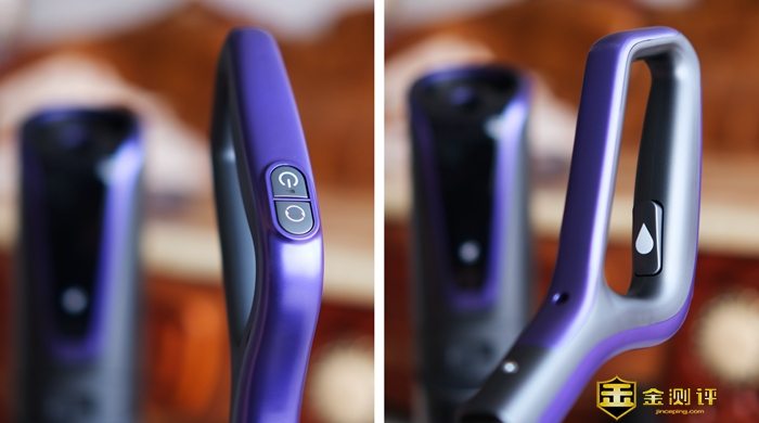 在手柄顶部是开关键和模式键,内侧是喷水按键,均采用硬塑材质,在开关键上设置了指示灯,可以让用户判断洗地机状态。