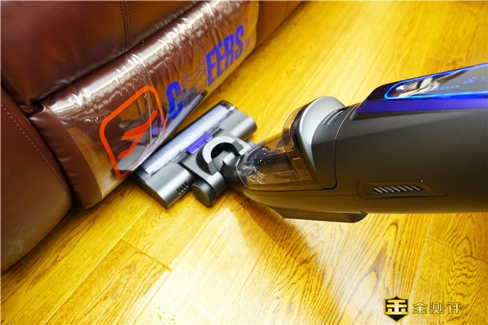 通过实测和下方的GIF动图可以看到,吸力效果很好,而且我是一边吸一边开启喷水模式,因为面粉遇到水就会凝固,所以我一边吸一边喷水,这样能够更加好的吸附,而且一拖一吸一遍就可以搞定,不用二次操作,地板干净如新。