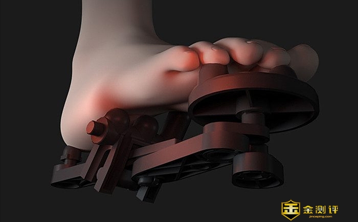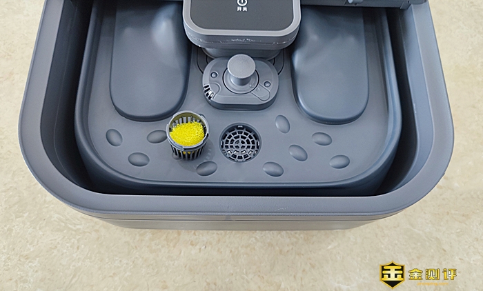 翻开足浴器的防尘盖,发现桶内左右内置的3D按摩椅机芯的上面设置TPE软胶按摩垫。这对TPE软胶按摩垫是采用亲肤环保材料的创新软胶一体成型,全面包裹分区按摩头。它的表面光滑,人手般柔软触感,不仅带给脚底全新的体验,而且泡脚按摩过程产生的皮屑等污渍一冲即净。