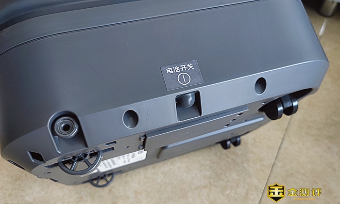 足浴器的左右侧面底座的直行轮的位置分别设置锁轮钉,且在左侧面底座中间位置还设置电池开关。