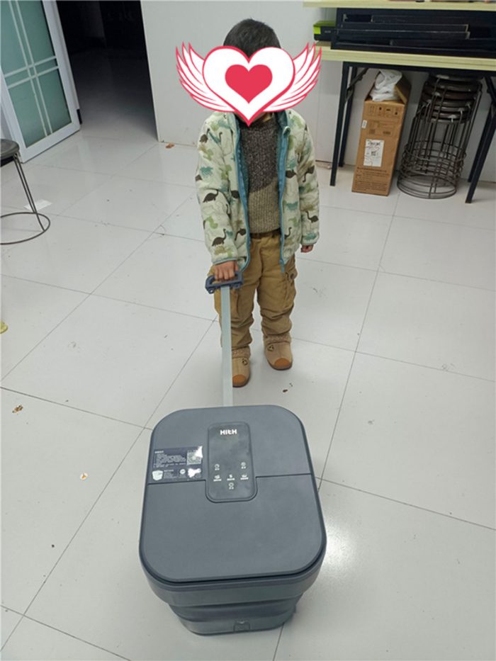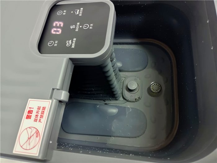 这款足浴盆的另一个独特设计就是这个足浴盆的把手部分,把手通过上折后可以拉出,方便拉着去倒水,这个设计真的是满满的创意和用心。使用过老式传统足浴盆的都知道,老式的足浴盆是需要用手推着,甚至是使用双手抱着去倒水的,这就非常笨重,HITH智能自动折叠足浴器D3巧妙的使用一个设计解决了这一个难题。