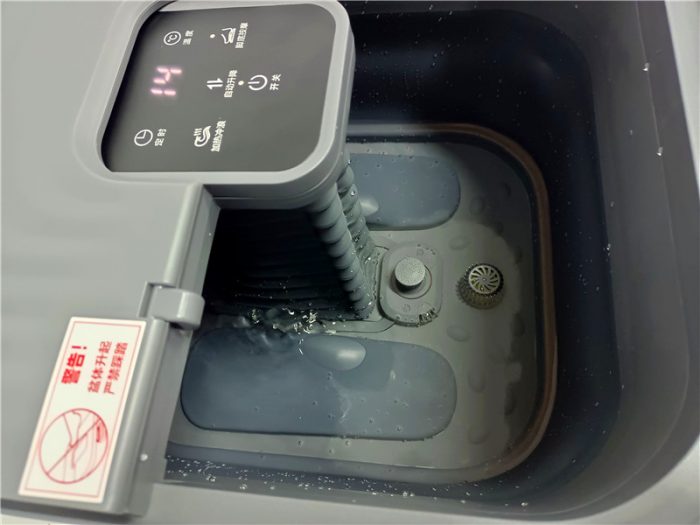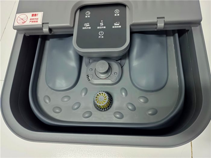 升降过程动态演示,这里要说明的就是升降的时候不用接交流电源,接通交流电源的时候足浴盆是无法进行升降操作的。从动图中也能够看出,足浴盆升降自如,省去了手工折叠的烦恼。