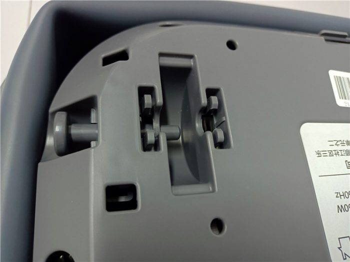 安装完成后底部就完成了,可以将足浴盆进行反转使用了。这里说明下左侧电源开关附近的盖子,是足浴盆锂电池的位置,这个位置在锂电池更换的时候更方便更换。