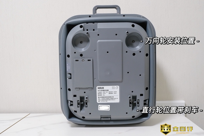 HITH折叠足浴按摩器D3这次主打折叠功能,材质上采用TPE软胶材质,有着很好的延展性能,并且折叠多次都不易损坏,通过打开底部折叠的电机开关,短按和长按顶部面板的自动升降按键,实现流畅的折叠升降过程! 可以明显感知到伸缩前后的体积变化! 并且折叠这个功能点,实际使用也确实挺方便,折叠好之后,解决了日常占地大收纳方便的问题,可以塞到沙发、床底、茶几底下,亦或是靠在墙角一处,只要是你能想到合适的地方,都能把它隐藏收纳起来。 折叠功能采用了内部锂电池供电的方式,和足浴功能分隔开,这样方便移动到任意角落进行伸缩折叠控制,再不受限,并且足浴功能有专门的电路设计,插头上防漏电保护系统,足浴器与插头连接处也有阀门防止进水,总体安全性非常高! 底部留有四个安装轮子的部位,安装非常简单,万向轮可以起到转向功能,直行轮搭配锁止插销可以固定住足浴器!