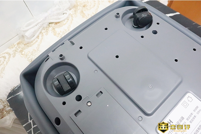 HITH足浴盆D3的轮子设计还是很科学的,万向轮配合定向轮使用,拖拽比较方便,同时即使是不使用的时候放在地上也不会乱跑。