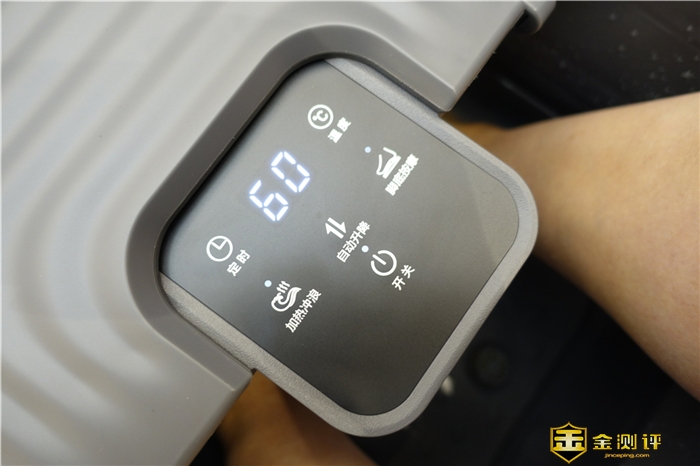 中间区域集成了一块显示屏,主要有定时,温度,加热冲浪,自动升降,脚底按摩,开关等操作控制,为一键触控式的操作方式。