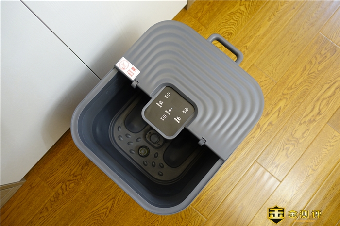 当足浴器内有水的时候,因为加上水的重量,所以足浴器搬运不是很方便,所以此时拉手可以拉出来,然后再通过底部的万向轮,可以轻松的移动,这个我觉得还是比较有创新意识的。