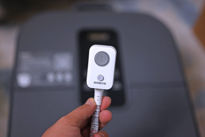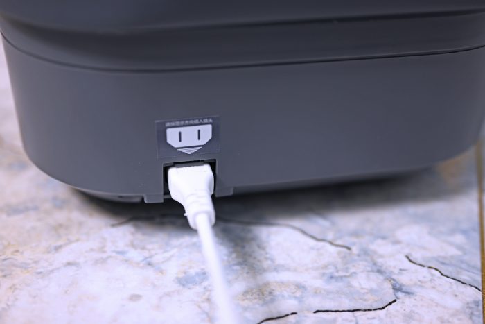 足浴器前面是电源接口,有安全门防护避免进水引起短路。