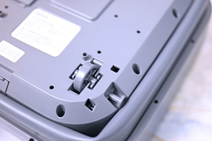 D3足浴器的底部有四个轮子,两个万向轮和两个定向轮,定向轮有锁定装置,保证在使用的时候,足浴器不会乱跑。安装也很简单,只要稍稍用力将轮子卡在对应位置就行了。