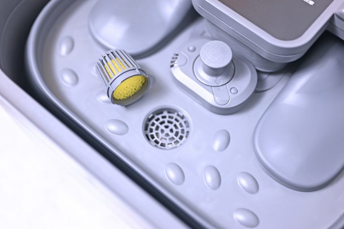 桶内部有可拆洗过滤网和可拆水泵。可拆洗过滤网方便经常清洁以免滋生细菌。水泵也需要定期清洗,时间久了毛发、皮屑、药渣等容易造成水泵堵塞从而影响足浴器的使用寿命。