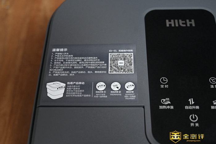 虽然市面上也有一些折叠足浴盆,但大多要手动操作,所以有些朋友可能会习惯性的想要手动打开HITH D3折叠足浴器,这显然是不行的,如果强行手动撑开这款足浴器可能会将其损坏,因此开合这款足浴器的时候千万不要用蛮力,看好说明书,按一下升降键就行了。