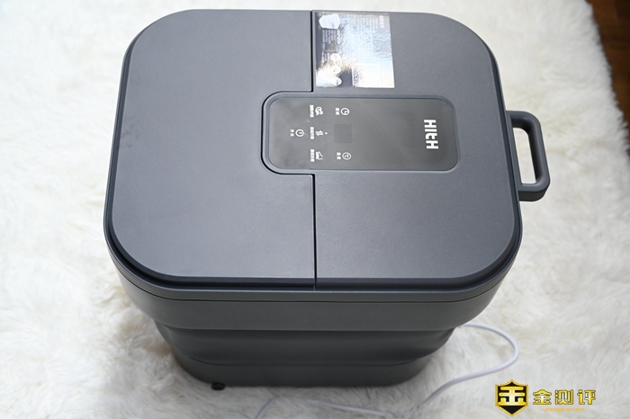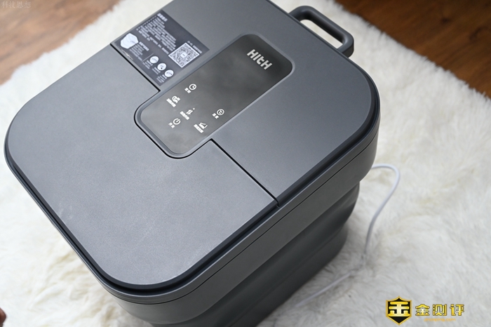 从HITH电动折叠足浴按摩器D3的顶部看,可以找到正中间的控制区域,日常使用主要通过这几枚触控按键来完成,像是温度就可以自由调节,操作起来非常方便,除此之外,这款折叠足浴器的整体结构和常规的产品差别不大,没有什么上手难度。