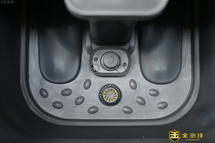 用完之后需要排水的时候,我们也不需要太多手动操作,只需要把底部的隐藏式排水口对准下水道,很快脏水就会排干净了,期间甚至不需要倾斜HITH折叠足浴器,顶多就是把足浴器里面残余的水分擦干净。因为这款足浴器内部相对较为光滑,容易藏污纳垢的按摩头也被包裹了起来,所以没有什么需要清理的地方,顶多就是定期把过滤网拆下来清洁一下。