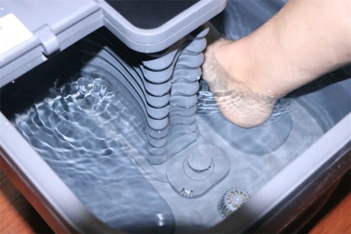 按摩方面,上文中说到过本款足浴器的按摩区可分三区,脚掌区域的揉捏效果可以舒经活络、脚弓区域的指压按摩可以深入穴位、脚跟刮痧按摩可以刺激反射,加上按摩器由亲肤性好的软胶按摩垫包被着其体验感是非常好的并且按摩椅级别的按摩器不会直接接触到水和皮肤所以也就不会有污渍隐藏,而且也非常容易清洗。
