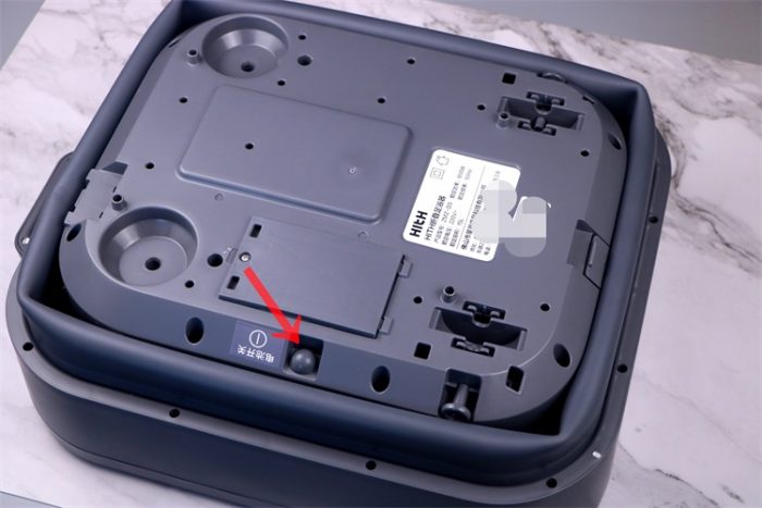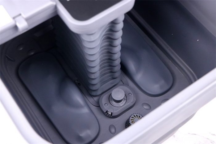 说起电动折叠还需要严格遵循操作步骤来的,首先要操作的是在足浴器底部找到电池开关(如图所示的地方),本款足浴器的自动升降依靠的是机身内置的1500mAh锂电池,让足浴盆可以做到无线自动升降,打开电池开关之后再去产品正面的面板之上触控自动升降按键即可完成,当看到这么好玩的操作之后我们会觉得这款足浴器真心的方便,其实比方便更重要的是卫生和健康,要知道传统的折叠足浴盆是需要用手撑开的,这样以来手部接触足浴盆内部的几率就大大增加了,感染足癣的几率也相应的增加了,所以说电动自动折叠的要好很多。