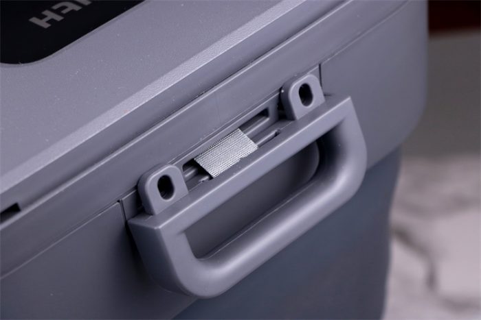 此外在产品的后侧上方还有一个把手设计,但是这里的把手却可以做到两个功用即足浴器折叠时候我们可以把它当做是提手,这样以来足浴器便轻巧便携;另一方面我们在足浴器装水使用后可以去除伸缩拉手将足浴器拉着走而并不是猫腰推着走。