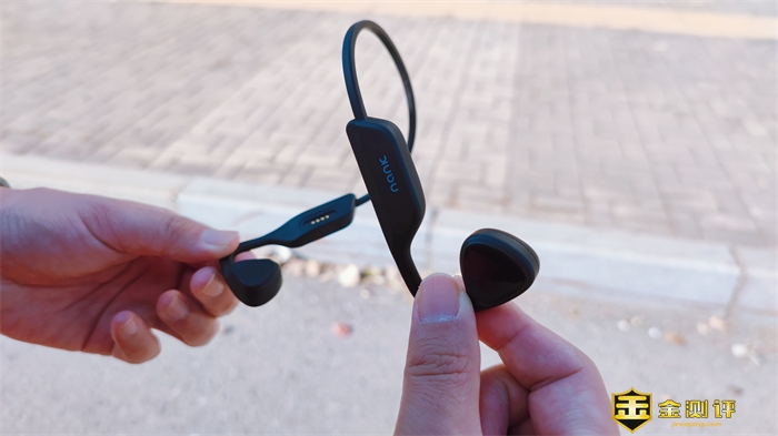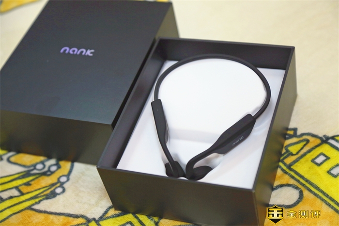 打开包装后,可以看到产品,产品包括骨传导耳机、充电线、说明书以及一副耳塞。耳机的外形整体上延续了之前南卡骨传导耳机的风格,有了一些细节上的提升,更加提升佩戴的舒适感。