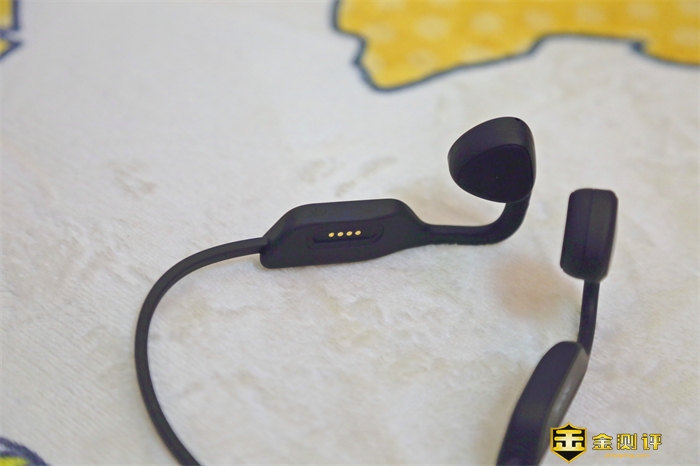 耳机的配上,有黑白两种可选。我的这款是黑色的,使用起来更加的耐脏。充电口位于耳机的内侧,采用磁吸的设计,相对于传统的连接方式,可以盲充,充电更方便,内置200mAh超大电池,搭配低功耗芯片,可以实现8小时超长续航,比普通骨传导耳机续航提升50%。