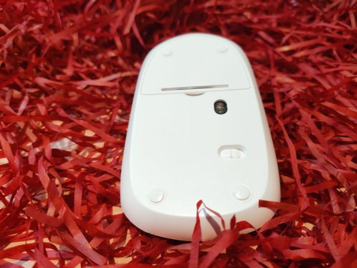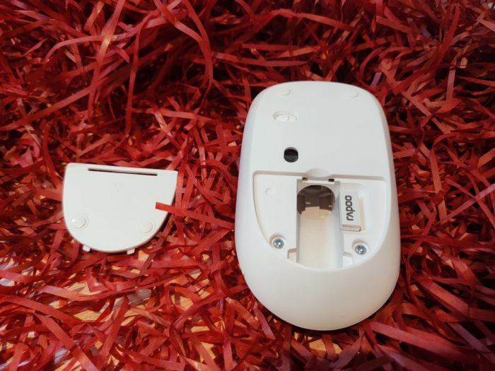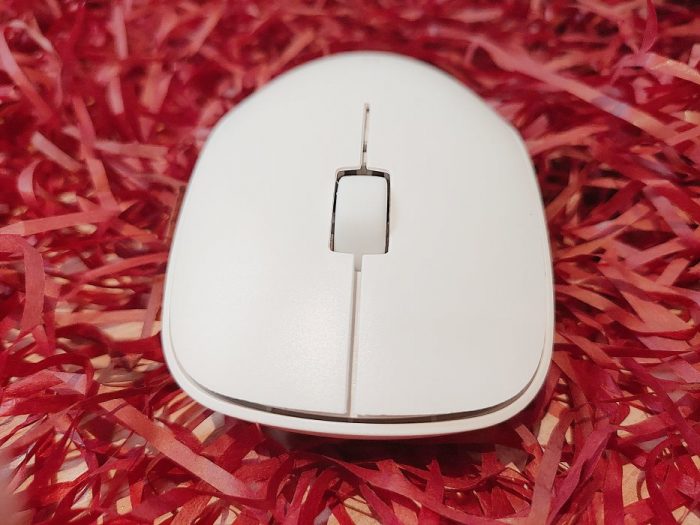 雷柏的标识位于滚轮延伸线正中心,不认真看几乎不明显。
