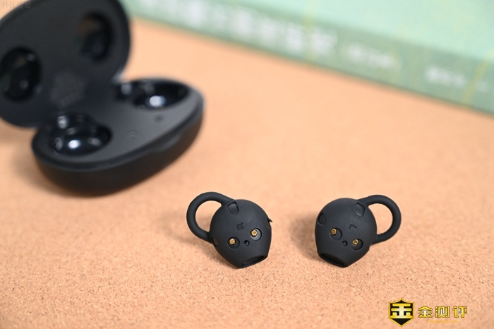 取出耳机之后,可以看到Jeet Air 2做得确实很精致,体积相比同类产品小很多。Jeet Air 2是半入耳式耳机,为了在运动中获得更稳定的佩戴效果,我们可以使用它配套的运动耳帽,这款耳机即使安装了耳帽,也可以正常放在充电盒里充电。