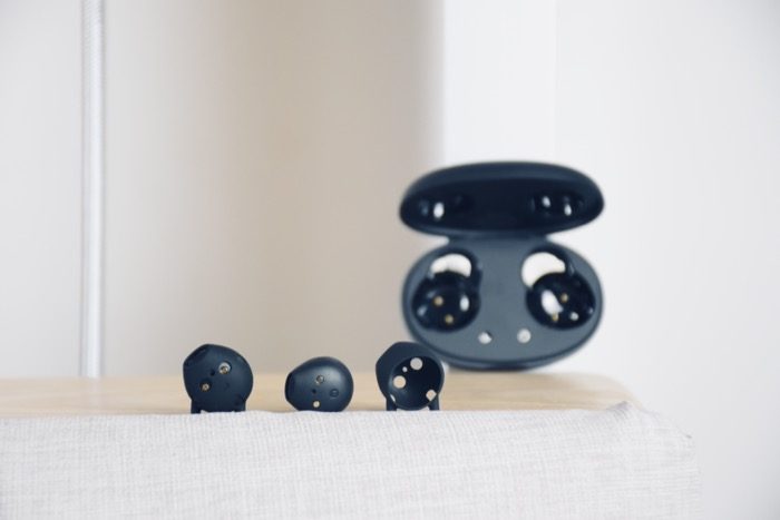 耳机机身采用迷你豆式圆管薄壁注塑成型工艺,再加上符合人体工学的设计,佩戴非常舒适,3.4g的自重,精细小巧的设计,完全可以说是无感佩戴。