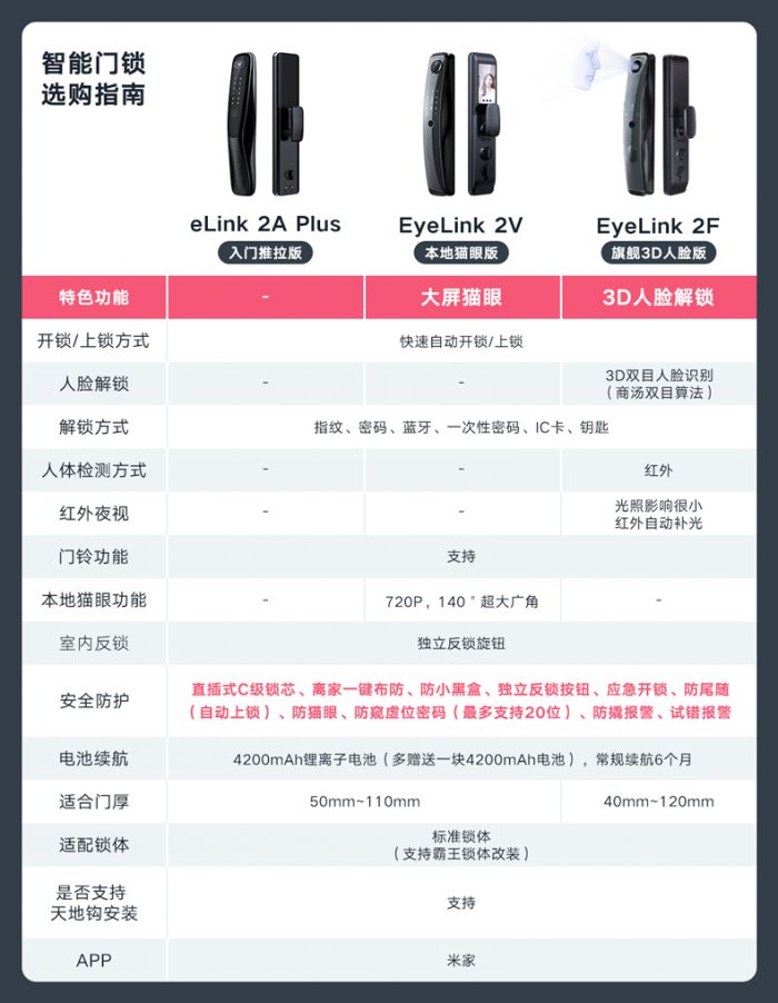 云米AI智能门锁eyeLink 2F人脸识别门锁怎么样呢?一起来看看实际的使用体验:【金测评】云米AI智能门锁eyeLink 2F评测:放开钥匙,靠脸开锁,倍儿有面子【金测评】漂亮又尽职的门神,云米eyeLink 2F 全自动人脸识别门锁体验【金测评】云米Aides智能门锁eyeLink 2F:3D双目人脸识别技术,开门更方便