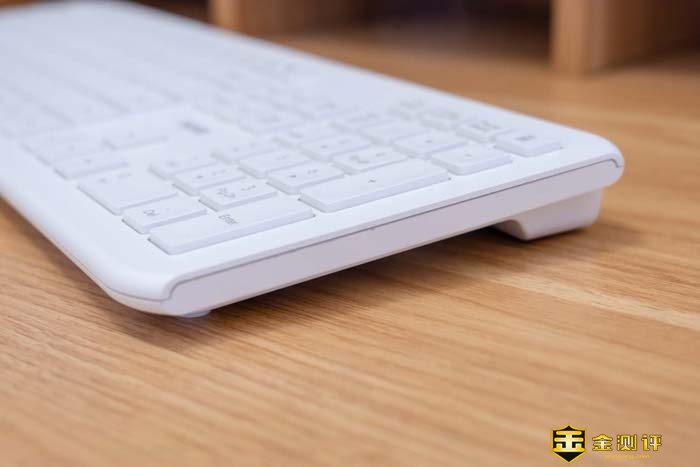 从侧面来看,键盘是非常薄的,但因为有角主工垫高的原因,因此键盘的整体厚度提升了上去,也是为了手感而牺牲了体积。