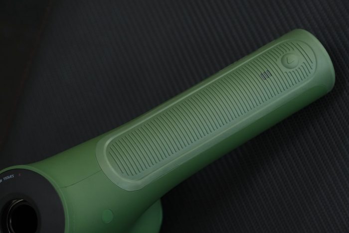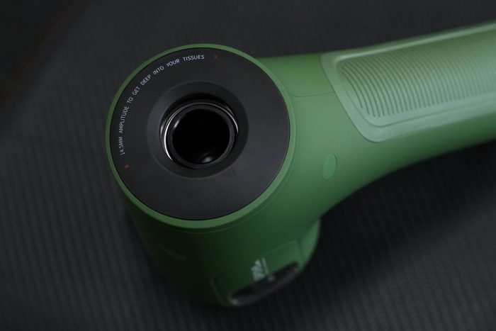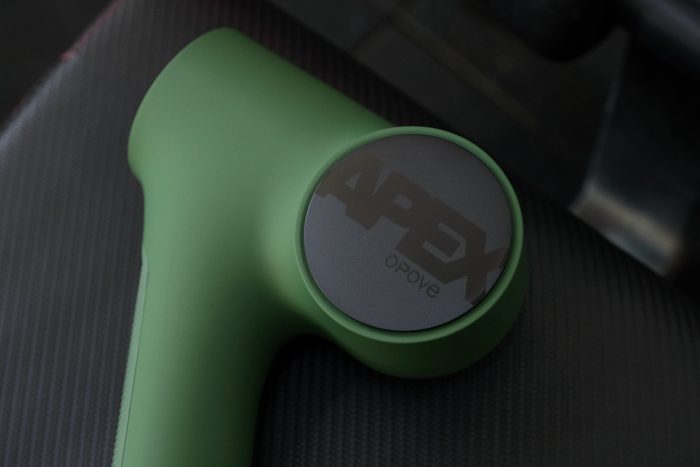 在手柄的尾部设有种转速调节档按钮,OPOVE APEX筋膜枪提供了三档变速,一档为1800转速/分钟,适用于热身;二档为2200转速/分钟,适用于放松肌肉;三档则是2700转速/分钟,适合于深层按摩。按钮的旁边设有档位指示灯,当前速度是几档,看指示灯就一目了然了。