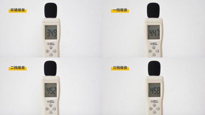 体验期间,我也分别测试了三个不同档位下的噪音表现,顺便附上环境噪音作为对比参考,如上图。