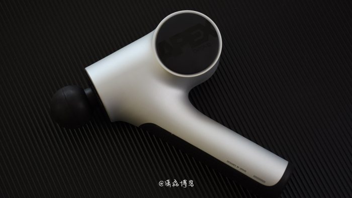 机身整体造型虽与多数筋膜枪一样是枪式结构,不过主机和手柄部分并非90度,而是做了向后弯曲的45度斜角处理,有些后仰的感觉。在实际使用的时候,这种造型并不会带来不适感,手掌抓住手柄上方的位置,虎口处刚好抵在45度倾角的位置,加之圆角的设计与虎口贴合也很自然。