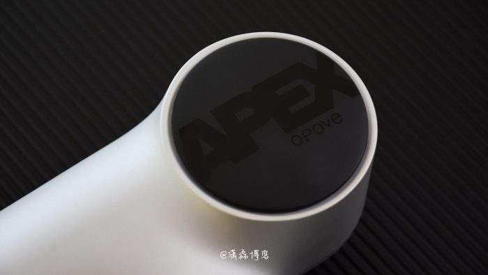 机身整体银色外壳采用亲肤质感涂层,手感温润舒适且能起到防滑效果。主机后方电机仓的区域并非完全对称,一侧镶嵌有一块圆形磨砂质感的盖板,中间标记有亮面质感的APEX字样;另一侧则设计成椭圆形透明视窗,可以直观的看到内部马达旋转,体现科技感的同时也能让用户获得更直观的视觉反馈。