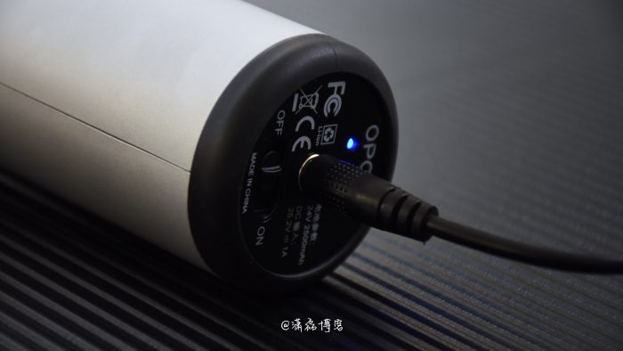 续航方面,这款筋膜枪内置有2500mAh容量的锂电池,满电状态下可以提供210分钟的续航,按照每天按摩10分钟换算,大约20天左右充电一次就可以了,通常短期差旅就不需要带充电器了。充电方面采用DC插头,适配器的输入功率是25.2V-1A,也就是25W左右的充电功率。