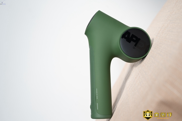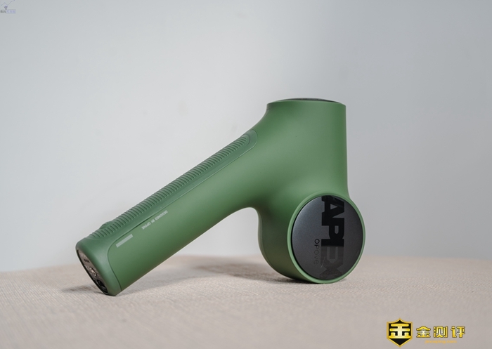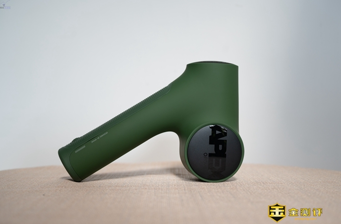这款筋膜枪机身的左右两面设计略有区别,其中一面有APEX的字样,做工非常精细,比常见的那种印刷LOGO更加好看一些。