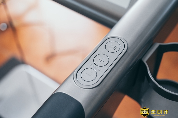 在华为智选赤兔跑步机的扶手位置,同样配备了可以控制跑步机的按键,其中左边可以调整坡度,并且能够打开蓝牙音箱功能,右边则可以控制跑步机启停,同时可以调整速度。为了确保使用的安全性,速度超过10KM/h后,就只能通过扶手按键进行调速了。