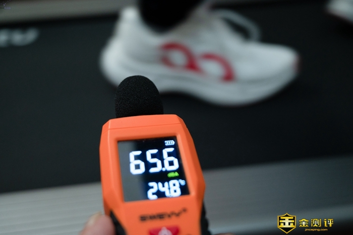 得益于华为智选赤兔跑步机在跑带、电机、跑台等多个环节对噪音进行了优化,在实际使用中,这款跑步机的噪音确实很低,我以10KM/h的速度跑步时,在靠近跑步机的位置测得噪音为85dB左右,相比同类产品动辄100dB以上的噪音,这个水平已经特别低了,到了距离跑步机一两米的位置,噪音就低到65dB左右了。