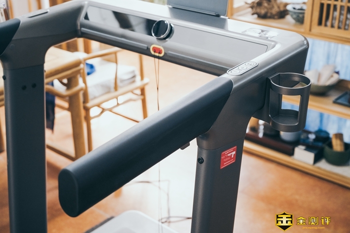 ?↑这款跑步机配备了一个水杯架,跑步时可以把水杯、饮料放在上面,方便在运动过程中补充水分。水杯架通过两枚自攻螺丝固定,非常的结实。