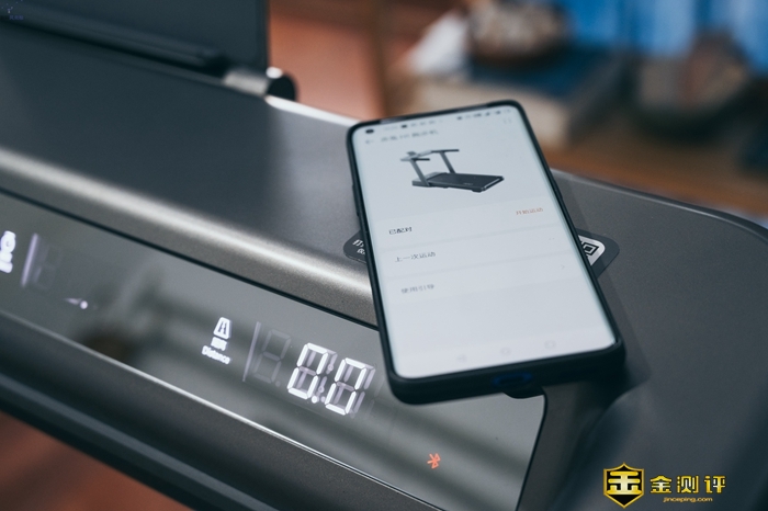 在这款跑步机操作面板的右侧,有一个NFC感应区,只要打开华为手机的NFC功能,然后轻轻一碰,不到一秒钟手机就可以识别并通过蓝牙连接到跑步机,操作非常简单方便。使用华为平板也是同样的操作方式,之后可以把手机或者平板放在跑步机操作台上的支架里,作为额外的显示屏来使用。
